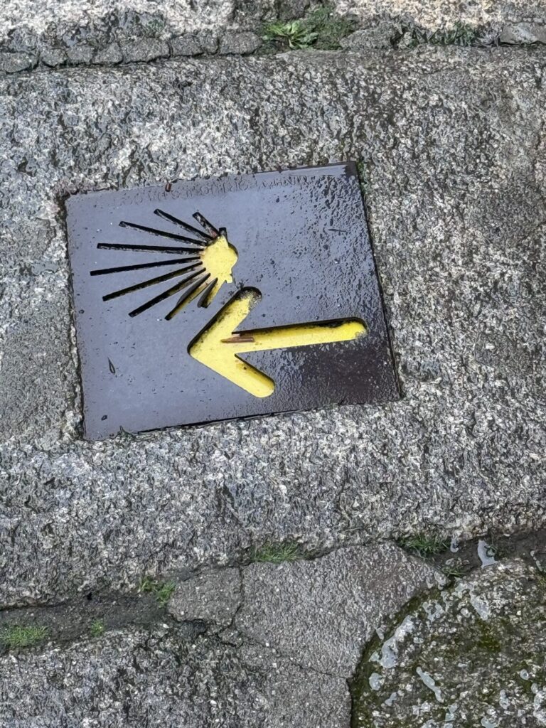 Along the way we kept spotting Camino markers set into the ground, the yellow arrows and shells. They start to appear more often once you notice them, each one quietly pointing the way forward.