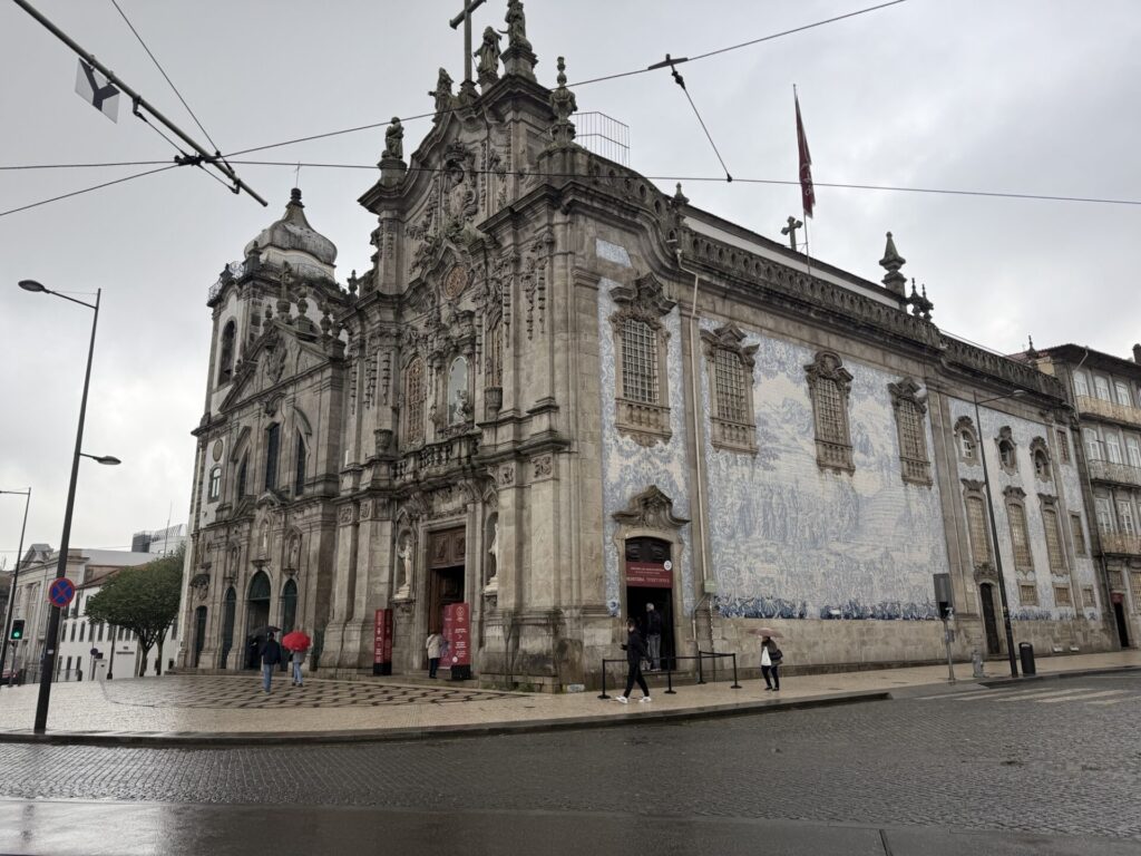 We started at Igreja do Carmo, the church with the famous blue tiled wall on the side. Up close, the detail is incredible, full scenes built into the tiles that you can stand and study for quite a while.